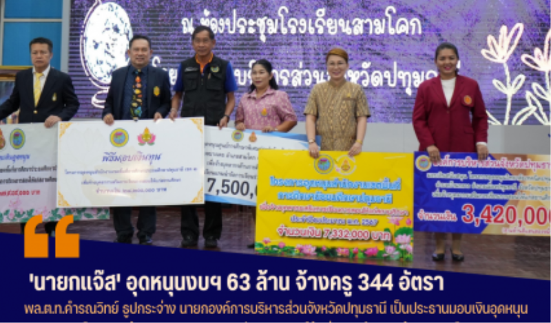 ครู-อาจารย์ tui sakrapee November 15, 2023 15 พฤศจิกายน 2566 ที่ห้องประชุมโรงเรียนสามโคก ตำบลบ้านงิ้ว อำเภอสามโคก จังหวัดปทุมธานี พล.ต.ท.คำรณวิทย์ ธูปกระจ่าง นายกองค์การบริหารส่วนจังหวัดปทุมธานี เป็นประธานมอบเงินอุดหนุนงบประมาณโครงการจ้างบุคลากรเสริมการเรียนการสอนให้แก่สถานศึกษา พร้อมมอบนโยบายทิศทาง การดำเนินงานทางด้านการศึกษาที่เกี่ยวข้องกับการอุดหนุนงบประมาณ และการปฏิบัติงานของครูอัตราจ้างที่องค์การบริหารส่วนจังหวัดปทุมธานีให้การสนับสนุน โดยกองการศึกษาศาสนาและวัฒนธรรม องค์การบริหารส่วนจังหวัดปทุมธานี…
