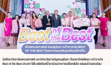 Blogนักศึกษา เด็กสหเวชศาสตร์ สวนสุนันทา คว้ารางวัล Best of the Best โครงการออมสินยุวพัฒน์รักษ์ถิ่น tui sakrapee November 10, 2023 นักศึกษาวิทยาลัยสหเวชศาสตร์ มหาวิทยาลัยราชภัฏสวนสุนันทา ทีมเลขารักษ์พัฒนา คว้ารางวัล Best of the Best ประเภท ใช้ดี ผลิตภัณฑ์น้ำยาบ้วนปากจากเปลือกส้มโอ กลุ่มแม่บ้านแควอ้อม จังหวัดสมุทรสงคราม จากโครงการออมสินยุวพัฒน์รักษ์ถิ่น ประจำปี 2566…