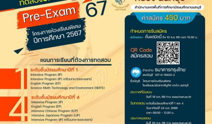 นักเรียน เปิดรับสมัครนักเรียนที่สนใจเข้าทดลองสอบเข้า ม.1,ม.4 (Pre-Exam 67) โครงการห้องเรียนพิเศษ โรงเรียนนวมินทราชินูทิศ หอวัง นนทบุรี EZ Webmaster November 6, 2023 เปิดรับสมัครนักเรียนที่สนใจเข้าทดลองสอบเข้า ม.1,ม.4 (Pre-Exam 67) โครงการห้องเรียนพิเศษ ปีการศึกษา 2567 สมัครผ่านระบบออนไลน์ได้ที่ https://bit.ly/3PZn3eF เปิดรับสมัครตั้งแต่ 2 ต.ค. 66 ถึง 10 ธ.ค.…