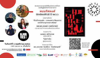นักศึกษากิจกรรม สมาคมภาษาและหนังสือแห่งประเทศไทย ในพระบรมราชูปถัมภ์ ขอเชิญผู้สนใจเข้าร่วมรายการ “พบนริศพงศ์ นักเขียนซีไรต์ ปี ๒๕๖๖” EZ Webmaster November 6, 2023 สมาคมภาษาและหนังสือแห่งประเทศไทย ในพระบรมราชูปถัมภ์ ขอเชิญผู้สนใจเข้าร่วมรายการ “พบนริศพงศ์ นักเขียนซีไรต์ ปี ๒๕๖๖” วิทยากร ธเนศ เวศร์ภาดา 👱♂️นายกสมาคมภาษาและหนังสือแห่งประเทศไทยฯ บรรยายพิเศษ “ด้วยรักและผุพัง :บาดแผลทางวัฒนธรรมและโศกนาฏกรรมทางสังคม ร่วมสนทนากับ นริศพงศ์…