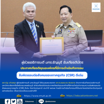 tui sakrapee September 30, 2024 ผู้ช่วยอธิการบดี มทร.ธัญบุรี รับเกียรติบัตรประกาศเกียรติคุณองค์กรที่มีการดำเนินกิจกรรมความรับผิดชอบต่อสังคมของภาคธุรกิจ (CSR) ดีเด่น tui sakrapee September 30, 2024 ผศ.ณัฐ แก้วสกุล ผู้ช่วยอธิการบดี มทร.ธัญบุรี ได้รับมอบหมายจาก รศ.ดร.สมหมาย ผิวสอาด รักษาการในตำแหน่งอธิการบดีมหาวิทยาลัยเทคโนโลยีราชมงคลธัญบุรี เข้ารับเกียรติบัตรประกาศเกียรติคุณองค์กรที่มีการดำเนินกิจกรรมความรับผิดชอบต่อสังคมของภาคธุรกิจ (CSR) ดีเด่น จังหวัดปทุมธานี ประจำปี ๒๕๖๗ โดยมีการดำเนิน กิจกรรมที่เป็นประโยชน์ต่อจังหวัดปทุมธานีอย่างต่อเนื่อง เพื่อยกย่องเป็นแบบอย่างที่ดี และสร้างแรงจูงใจในการให้ความสำคัญต่อการดำเนินกิจกรรมส่งเสริมความรับผิดชอบต่อสังคมของภาคธุรกิจ สำนักงานพัฒนาสังคมและความมั่นคงของมนุษย์จังหวัดปทุมธานี วันพฤหัสบดีที่ ๒๖ กันยายน ๒๕๖๗ ณ ห้องประชุมบัวหลวง ชั้น ๕ ศาลากลางจังหวัดปทุมธานี Continue Reading