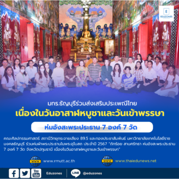 มทร.ธัญบุรี ร่วมห่มอังสะพระประธาน 7 องค์ 7 วัด tui sakrapee September 24, 2024 คณะศิลปกรรมศาสตร์ สถานีวิทยุกระจายเสียง 89.5 และกองประชาสัมพันธ์ มหาวิทยาลัยเทคโนโลยีราชมงคลธัญบุรี ร่วมห่มผ้าพระประธานในพระอุโบสถ ประจำปี 2567 “ถักร้อย สานศรัทธา ห่มอังสะพระประธาน 7 องค์ 7 วัด จังหวัดปทุมธานี เนื่องในวันอาสาฬหบูชาและวันเข้าพรรษา” พระอรรณพ จัตุวงศ์ วัดมูลจินดาราม เผยว่า ผ้าอังสะ สำหรับพระพุทธรูปพระประธานในอุโบสถ์ ไม่ได้มีลวดลายที่เด่นชัด แต่ด้วยปัจจุบันยุคสมัยที่เปลี่ยนไป มีการเรียนการสอนว่าด้วยการออกแบบ มีการออกแบบลวดลายในผ้า โดยผ้าอังสะที่ใช้ห่มพระพุทธรูปไม่ได้อยู่ในเครื่องอัฐบริขาร การออกแบบลวดลายใช้ห่มสไปพระพุทธรูปปกคลุมร่างกาย ไม่ถือเป็นการผิดวินัย กลับเป็นการจูงใจให้นักศึกษาที่ออกแบบลวดลาย รักษาประเพณีการห่มผ้าอังสะพระประธานสืบเนื่องในทันสมัยมากยิ่งขึ้น โดยอานิสงค์ของการถวายผ้า ไม่ว่าจะเป็นผ้าอังสะ จีวร สบง หรือเครื่องนุ่งห่มทุกชนิด กับพระสงฆ์ หรือแม้กระทั่งตัวแทนของพระพุทธเจ้า คือ พระพุทธรูปโดยเฉพาะอย่างยิ่งพระพุทธรูปในอุโบสถ์ การถวายผ้าเป็นการให้การปกคลุม… Continue Reading