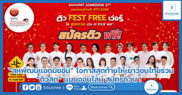 “สหพัฒน์แอดมิชชั่น” โอกาสสุดท้ายให้เยาวชนไทยร่วม “ติวสด” แบบออนไลน์ สมัครด่วน ! ก่อนเริ่มติวจริง 12 วิชา 6 วันติด 7-12 ตค. นี้ EZ Webmaster September 23, 2024 “สหพัฒน์แอดมิชชั่น” ครั้งที่ 27 ชวน DEK68 มาชมการติวสด 6 วันติด 7-12 ตุลาคม 2567 เวลา 09.00-16.00 น. ติว 12 วิชากับ 17 ติวเตอร์ขั้นเทพของประเทศไทย ที่ส่งสัญญาณถ่ายทอดสดมาจากห้องประชุม ดร. เทียม โชควัฒนา คณะนิเทศศาสตร์ จุฬาลงกรณ์มหาวิทยาลัย โอกาสสุดท้ายที่นักเรียน DEK68 จะได้เข้าร่วมติวสดแบบออนไลน์ ที่ให้บรรยากาศเหมือนไปนั่งติวกับติวเตอร์แบบตัวเป็นๆ แต่ไม่ต้องเสียเวลาเดินทาง และยังเปิดชมการติวได้ทุกที่ โดยผู้สมัครติวแบบออนไลน์ จะได้รับสิทธิ์โหลดเอกสารประกอบการติว สำหรับผู้ที่เข้าเรียนครบตามเวลาที่กำหนด ยังจะได้รับ Certificate รวมถึงรับสิทธิ์โหลดเอกสารเฉลยและสิทธิ์ในการเข้าชมคลิปติวย้อนหลังอีกด้วย ผู้ที่สนใจสมัครเข้าร่วมติวสดแบบออนไลน์ สามารถสมัครด่วนได้ที่เว็บไซต์ www.sahapatadmission.com โครงการ “สหพัฒน์แอดมิชชั่น ทบทวนความรู้สู่มหาวิทยาลัย” เป็นโครงการจัดทบทวนความรู้ฟรี ไม่มีค่าใช้จ่ายให้นักเรียนที่เตรียมตัวสอบเข้ามหาวิทยาลัย จัดโดยบริษัท สหพัฒนพิบูล จำกัด (มหาชน) หรือ SPC โดยผลิตภัณฑ์ มาม่า บิสชิน มองต์เฟลอ ริชเชส และมูลนิธิ ดร.เทียม โชควัฒนา ซึ่งปีนี้จัดขึ้นเป็นครั้งที่ 27 ด้วยแนวคิด “Sahapat Admission ครั้งที่ 27 “ติว FEST FREE เว่อร์”ให้ #DEK68 เจ๋ง IN YOUR WAY! โอกาสเดียวของ DEK68 ที่จะได้ติวเข้มข้นกับติวเตอร์ชั้นนำในติวสด 6 วันติด ติว 12 วิชากับ 17 ติวเตอร์แถวหน้าของประเทศไทย ติดตามข้อมูลข่าวสารโครงการสหพัฒน์แอดมิชชั่นเพิ่มเติมได้ทาง Facebook: Sahapat… Continue Reading