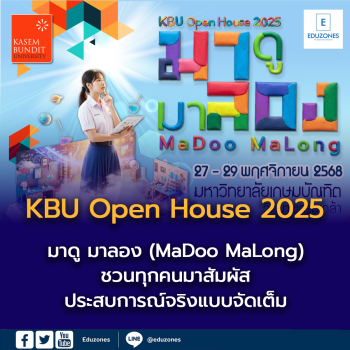 เกษมบัณฑิตเปิดบ้าน ….ชวนน้องๆ มาเปิดใจ มาดู มาลอง EZ Webmaster November 3, 2025 เกษมบัณฑิตเปิดบ้าน ….ชวนน้องๆ มาเปิดใจ มาดู มาลอง KBU Open House 2025 — มาดู มาลอง (MaDoo MaLong) ชวนทุกคนมาสัมผัสประสบการณ์จริงแบบจัดเต็ม องเป็นเชฟ ลองเป็นนักกฎหมาย ลองจัดรายการ ลองสร้างแอปพลิเคชัน ลองวิเคราะห์เกมกีฬา หรือแม้แต่ลองงานสายแฟชั่น ดีไซน์ วิศวะ การบิน และอีกเพียบ วันที่ 27 – 29 พฤศจิกายน 2568 ณ มหาวิทยาลัยเกษมบัณฑิต วิทยาเขตร่มเกล้า มาดู มาลอง ของจริงกับมือ แล้วจะรู้ว่าเส้นทางไหนใช่สำหรับเรา ลงทะเบียนร่วมงานได้ที่ https://forms.gle/Nh1MQ1rhMhYZKAXg7 ลงทะเบียนลองเรียน ลองเล่น ลองเป็นตัวจริง… Continue Reading