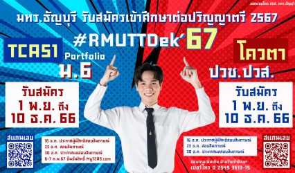 Blogนักเรียน เตรียมพร้อม! มทร.ธัญบุรี เปิดรับ TCAS1 รอบ Portfolio เริ่ม 1 พ.ย.นี้ tui sakrapee October 7, 2023 มหาวิทยาลัยเทคโนโลยีราชมงคลธัญบุรี เปิดรับสมัครนักศึกษาใหม่ เข้าศึกษาต่อระดับปริญญาตรี ปีการศึกษา2567 ผู้สำเร็จการศึกษา มัธยมศึกษาปีที่6 ผ่านระบบ TCAS1 รอบ Portfolio รับสมัคร 1 พ.ย. ถึง 10 ธ.ค.…