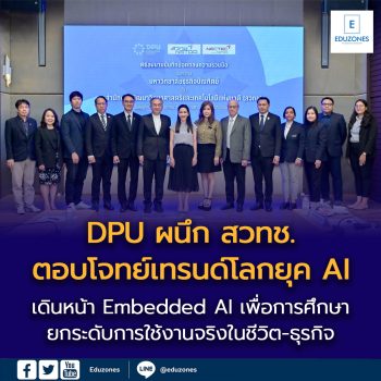 EZ Webmaster January 16, 2026 DPU ผนึก สวทช. ตอบโจทย์เทรนด์โลกยุค AI เดินหน้า Embedded AI เพื่อการศึกษา ยกระดับการใช้งานจริงในชีวิต-ธุรกิจ EZ Webmaster January 16, 2026 มหาวิทยาลัยธุรกิจบัณฑิตย์ (DPU) ลงนามความร่วมมือ สำนักงานพัฒนาวิทยาศาสตร์และเทคโนโลยีแห่งชาติ (สวทช.) เดินหน้าโครงการด้านการวิจัยและพัฒนา ขับเคลื่อน Embedded AI หรือ “AI เพื่อการศึกษา” ยกระดับการเรียนการสอนยุคใหม่ พัฒนาศักยภาพและสร้างกำลังคนดิจิทัล ตามนโยบาย อว. for AI ของกระทรวงการอุดมศึกษา วิทยาศาสตร์ วิจัยและนวัตกรรม โดยเมื่อวันที่ 8 มกราคม 2569 ที่ผ่านมา ทั้งสองฝ่ายได้ลงนามบันทึกข้อตกลงความร่วมมือทางวิชาการ เพื่อขับเคลื่อนการประยุกต์ใช้ ปัญญาประดิษฐ์ (Artificial Intelligence:… Continue Reading