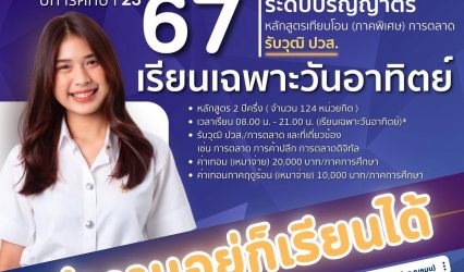 นักเรียน คณะบริหารธุรกิจ มทร.ธัญบุรี เปิดรับนักศึกษา สาขาการตลาด หลักสูตรเทียบโอน (ภาคพิเศษ) หลักสูตร 2 ปีครึ่ง เรียนเฉพาะวันอาทิตย์ tui sakrapee September 27, 2023 คณะบริหารธุรกิจ มหาวิทยาลัยเทคโนโลยีราชมงคลธัญบุรี เปิดรับสมัครนักศึกษา สาขาการตลาด หลักสูตรเทียบโอน (ภาคพิเศษ) ประจำปีการศึกษา 2567 หลักสูตร 2 ปีครึ่ง ( จำนวน 124 หน่วยกิต )…