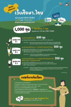 ‘เว็บศึกษา.ไทย’ ให้ทุนหนุนโรงเรียนทั่วประเทศ พัฒนาเว็บไซต์เป็นของตนเอง tui sakrapee September 3, 2024 มูลนิธิทีเอชนิค ขอเชิญโรงเรียนขนาดเล็กและขนาดกลางสมัครรับทุนสนับสนุนค่าใช้จ่ายในการสร้างเว็บไซต์ภายใต้โครงการ “เว็บศึกษา.ไทย” ส่งเสริมการใช้โดเมน .ac.th และ .ศึกษา.ไทย จำนวน 1,000 ทุน มูลนิธิศูนย์สารสนเทศเครือข่ายไทย (ทีเอชนิค) เปิดโครงการ “เว็บศึกษา.ไทย” เพื่อส่งเสริมการใช้ ชื่อโดเมน .ac.th และ .ศึกษา.ไทย ในการสร้างเว็บไซต์และอีเมลสำหรับภาคการศึกษา โดยโครงการนี้มุ่งให้การสนับสนุนโรงเรียนขนาดเล็กและขนาดกลางที่ขาดแคลนงบประมาณหรือบุคลากร ด้วยการจัดสรรทุนสนับสนุนจำนวน 1,000 ทุนภายในปี พ.ศ. 2567 สำหรับโรงเรียนขนาดเล็กและขนาดกลางที่ยังไม่มีชื่อโดเมน .ac.th หรือ .ศึกษา.ไทย สามารถสมัครรับทุนสนับสนุนนี้ได้ โดยมูลนิธิฯ ได้จัดสรรทุนไว้ 3 ประเภท ได้แก่ ทุนสนับสนุนชื่อโดเมน จำนวน 600 ทุน, ทุนสนับสนุนชื่อโดเมนพร้อมเว็บไซต์โรงเรียนสำเร็จรูป จำนวน… Continue Reading