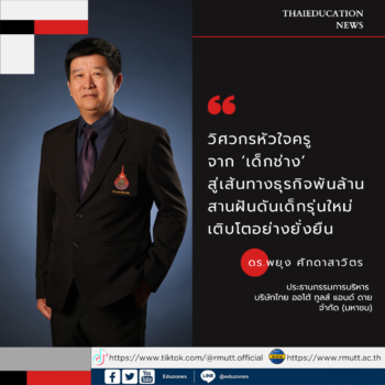 tui sakrapee August 31, 2024 ‘ดร.พยุง ศักดาสาวิตร’ วิศวกรหัวใจครู จาก ‘เด็กช่าง’ สู่เส้นทางธุรกิจพันล้าน สานฝันดันเด็กรุ่นใหม่เติบโตอย่างยั่งยืน tui sakrapee August 31, 2024 ดร.พยุง ศักดาสาวิตร ประธานกรรมการบริหาร บริษัทไทย ออโต้ ทูลส์ แอนด์ ดาย จำกัด (มหาชน) TAT ผู้ผลิตแม่พิมพ์โลหะ อุปกรณ์จับยึด และชิ้นส่วนยานยนต์เพื่อการผลิตรถยนต์รุ่นใหม่สำหรับจำหน่ายทั้งในประเทศและส่งออกไปทั่วโลก มูลค่ากว่า 3,000 ล้านบาท ผู้ที่เติบโตมาจาก ‘เด็กช่าง’ ไล่ตามฝันที่จะเป็นครูช่าง ก่อนกระโจนสู่เส้นทางธุรกิจพันล้าน จนก้าวเข้าทำเนียบเป็นบริษัทมหาชนสำเร็จ กระทั่งสู่ความเป็นหนึ่งในอุตสาหกรรมแม่พิมพ์โลหะและชิ้นส่วนยานยนต์ของภูมิภาคเอเชียที่ได้รับการยอมรับระดับสากลในปัจจุบัน โดย ดร.พยุง ศักดาสาวิตร สำเร็จการศึกษาจากสถาบันเทคโนโลยีราชมงคล ปัจจุบันได้รับเลือกให้เป็นกรรมการสภามหาวิทยาลัยผู้ทรงวุฒิ มหาวิทยาลัยเทคโนโลยีราชมงคลธัญบุรี (มทร.ธัญบุรี) มหาวิทยาลัยเทคโนโลยีราชมงคลรัตนโกสินทร์ และมหาวิทยาลัยเทคโนโลยีราชมงคลสุวรรณภูมิ… Continue Reading
