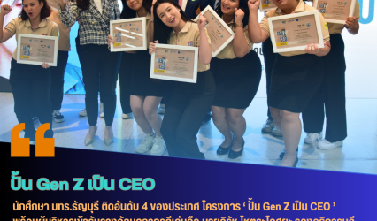 Blogนักศึกษา มทร.ธัญบุรี คว้าอันดับ 4 ของประเทศ โครงการ ‘ปั้น Gen Z เป็น CEO’ tui sakrapee September 19, 2023 รศ.ดร.สมหมาย ผิวสอาด อธิการบดีมหาวิทยาลัยเทคโนโลยีราชมงคลธัญบุรี (มทร.ธัญบุรี) เผยว่า ตามที่กรมส่งเสริมการค้าระหว่างประเทศ กระทรวงพาณิชย์ โดยสถาบันพัฒนาผู้ประกอบการการค้ายุคใหม่ได้ดำเนินโครงการกระจายความรู้สู่ผู้ประกอบการยุคใหม่ ‘From Gen Z to be CEO’ ประจำปี 2566…