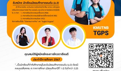นักเรียน โรงเรียนเตรียมวิศวกรรมศาสตร์ ไทย-เยอรมัน มจพ. รับสมัครโควตาเรียนดี ปี’67 EZ Webmaster September 15, 2023 โรงเรียนเตรียมวิศวกรรมศาสตร์ ไทย-เยอรมัน วิทยาลัยเทคโนโลยีอุตสาหกรรม มหาวิทยาลัยเทคโนโลยีพระจอมเกล้าพระนครเหนือ (มจพ.) เปิดรับสมัครนักเรียน มัธยมศึกษาตอนต้น (ม.3) เข้าศึกษาในระดับประกาศนียบัตรวิชาชีพ (ปวช.) หลักสูตรเตรียมวิศวกรรมศาสตร์ ไทย-เยอรมัน (ฐานวิทยาศาสตร์และเทคโนโลยี) ประเภทโควตาเรียนดี ปีการศึกษา 2567…