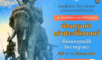 ครู-อาจารย์ เชิญครูอาจารย์ทั่วประเทศ และผู้ที่สนใจ ท่องกรุงเก่าเล่าประวัติศาสตร์ “ทิพยสืบสาน รักษา ต่อยอด นวัตกรรมศาสตร์พระราชา ครั้งที่ ๓๓” EZ Webmaster September 12, 2023 ร่วมตามรอยสถานที่จริงในประวัติศาสตร์ ทุ่งมะขามหย่อง สถานที่ทรงทำยุทธหัตถีของสมเด็จพระศรีสุริโยทัย แผ่นดินแห่งพระมหากรุณาธิคุณ ที่ในหลวงรัชกาลที่ ๙ ทรงเกี่ยวข้าว และสร้างโครงการแก้มลิงในพระราชดำริ รองรับน้ำป้องกันน้ำท่วมกรุงเทพ ฯ และพระนครศรีอยุธยา ศึกษาแนวทางการพัฒนาสังคมและสิ่งแวดล้อมครบทุกมิติ จากวิทยากรผู้ทรงคุณวุฒิ รศ. นพ. สุริยเดว…