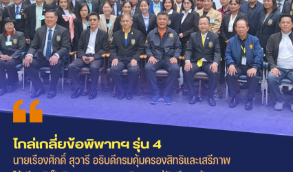 Blogกิจกรรม อธิบดีกรมคุ้มครองสิทธิและเสรีภาพ ให้เกียรติเป็นวิทยากรบรรยายพิเศษให้นักศึกษาผู้อบรมหลักสูตรไกล่เกลี่ยข้อพิพาทฯ รุ่น 4 วิทยาลัยทองสุข tui sakrapee September 9, 2023 นายเรืองศักดิ์ สุวารี อธิบดีกรมคุ้มครองสิทธิและเสรีภาพ ให้เกียรติเป็นวิทยากรบรรยายพิเศษให้นักศึกษาผู้อบรมหลักสูตรไกล่เกลี่ยข้อพิพาทฯ รุ่น 4 วิทยาลัยทองสุข ในวันที่ 9 กันยายน 2566 ช่วง 09.00-10.00 น. ที่ห้อง 109…