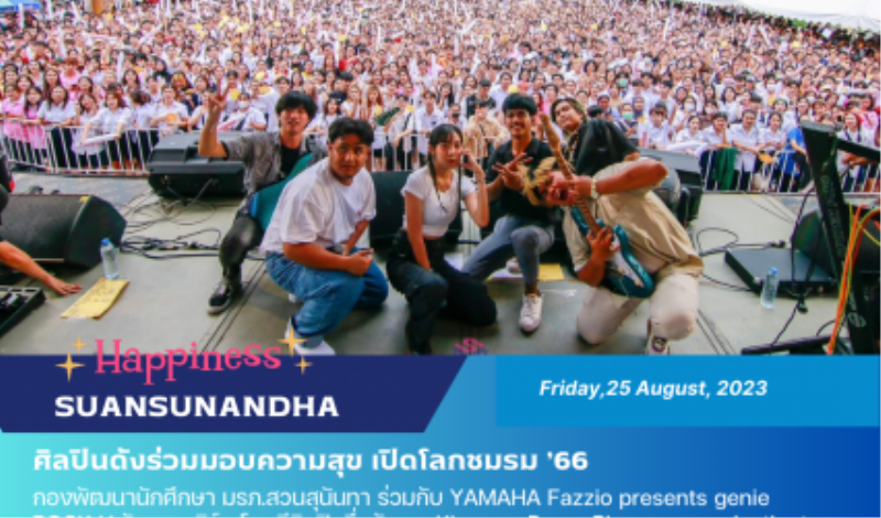 Blogนักศึกษา ศิลปินดังร่วมมอบความสุข เปิดโลกชมรม ’66 สวนสุนันทาสุดคึกคัก tui sakrapee August 28, 2023 วันที่ 25 สิงหาคม 2566 #มหาวิทยาลัยราชภัฏสวนสุนันทา โดยฝ่ายกิจกรรมนักศึกษาและกิจการศิษย์เก่า กองพัฒนานักศึกษา จัด #กิจกรรมเปิดโลกชมรม ประจำปีการศึกษา 2566 ณ ลานกิจกรรมหน้าอาคารคณะวิทยาศาสตร์และเทคโนโลยี ในช่วงเช้า มีการเปิดบูธนิทรรศการเปิดรับสมัครสมาชิกชมรมของนักศึกษาเป็นจำนวนมาก ซึ่งมีนักศึกษาให้ความสนใจเข้าร่วมกันอย่างคึกคัก…