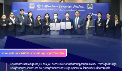 กิจกรรม สวนสุนันทา MOU สถาบันคุณวุฒิวิชาชีพ ส่งเสริมและพัฒนากําลังคนผ่านระบบคุณวุฒิวิชาชีพ tui sakrapee August 21, 2023 สวนสุนันทา MOU สถาบันคุณวุฒิวิชาชีพ ส่งเสริมและพัฒนากําลังคนผ่านระบบคุณวุฒิวิชาชีพและระบบ E-Workforce Ecosystem 21 สิงหาคม 2566 รองศาสตราจารย์ ดร.ชุติกาญจน์ ศรีวิบูลย์ อธิการบดีมหาวิทยาลัยราชภัฏสวนสุนันทา และ นางสาวจุลลดา มีจุล…