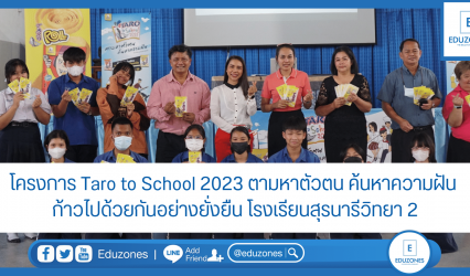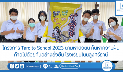 นักเรียน โครงการ Taro to School 2023 ตามหาตัวตน ค้นหาความฝัน ก้าวไปด้วยกันอย่างยั่งยืน โรงเรียนโนนสูงศรีธานี จ.นครราชสีมา EZ Webmaster August 15, 2023 “อาชีพที่ได้รับความนิยมในปัจจุบันอาจไม่ได้รับความนิยมในอนาคต เรียนรู้สิ่งใหม่ๆ อยู่เสมอ เพื่อเตรียมพร้อมสำหรับอาชีพในอนาคต” อ.จิตปภา สุพันธะ (ครูมิกกี้) ได้ให้ข้อคิดกับน้องๆ รร.โนนสูงศรีธานี จ.นครราชสีมา ในโครงการ Taro to School 2023 ตามหาตัวตน…