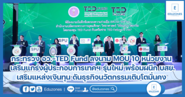 กระทรวง อว.-TED Fund ลงนาม MOU 10 หน่วยงาน เสริมแกร่งผู้ประกอบการเทคฯ รุ่นใหม่ พร้อมผนึก บสย. เสริมแหล่งเงินทุน ดันธุรกิจนวัตกรรมเติบโตมั่นคง คาดสร้างมูลค่าทางเศรษฐกิจ 1 พันล้านบาท ในปี 67 EZ Webmaster July 30, 2024 กองทุนพัฒนาผู้ประกอบการเทคโนโลยีและนวัตกรรม หรือ TED Fund กระทรวงการอุดมศึกษา วิทยาศาสตร์ วิจัยและนวัตกรรม (อว.) จัดพิธีลงนามความร่วมมือกับเครือข่ายร่วมพัฒนาผู้ประกอบการ (TED Fellow) รวม 10 หน่วยงาน เน้นสนับสนุนผู้ประกอบการเทคโนโลยีและนวัตกรรมรุ่นใหม่ เข้าถึงแหล่งเงินทุน เสริมศักยภาพ ยกระดับความสามารถในการแข่งขันด้านธุรกิจไทยอย่างมั่นคง พร้อมลงนาม บรรษัทประกันสินเชื่ออุตสาหกรรมขนาดย่อม (บสย.) ร่วมสร้างโอกาสช่วยเหลือการเข้าถึงแหล่งสินเชื่อที่เพียงพอ ตอบโจทย์การขับเคลื่อนเศรษฐกิจให้เติบโตอย่างมีเสถียรภาพและยั่งยืน คาดการณ์ภายในปี 2567 จะสามารถสร้างมูลค่าผลกระทบทางเศรษฐกิจและสังคมได้ 1,000 ล้านบาท นายวันนี นนท์ศิริ ผู้ช่วยปลัดกระทรวงการอุดมศึกษา วิทยาศาสตร์ วิจัยและนวัตกรรม (อว.) กล่าวว่า ประเทศไทยกำลังอยู่ในเป้าหมายของการเดินหน้าไปสู่ประเทศที่พัฒนาแล้ว ‘กระทรวง อว.’ จึงให้ความสำคัญกับการขับเคลื่อนการอุดมศึกษา วิทยาศาสตร์ การวิจัย และนวัตกรรมของไทยให้เข้าใกล้กับมาตรฐานสากล รวมถึงเพิ่มอันดับความสามารถการแข่งขันด้านเศรษฐกิจด้วยฐานนวัตกรรมในระดับนานาชาติด้วย แนวทางหลักที่กระทรวง อว. ใช้ในการทำงาน คือการเพิ่มจำนวนผู้ประกอบการเทคโนโลยีและนวัตกรรมในทุกระดับ ตั้งแต่ระดับเยาวชน, Startup ไปจนถึง SMEs รวมถึงมุ่งสร้างให้เกิดมูลค่าผลกระทบทางเศรษฐกิจที่เกิดจากการนำผลงานวิจัยและนวัตกรรมไปใช้ประโยชน์จริงในเชิงพาณิชย์ โดยมี TED Fund เป็นหนึ่งในกลไกเสริมความแข็งแกร่งให้กลุ่มผู้ประกอบการ… Continue Reading