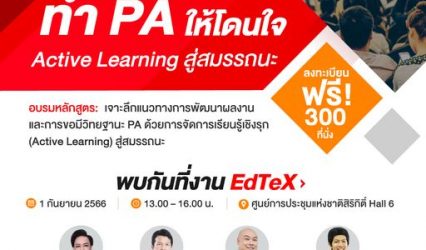 ครู-อาจารย์ เจาะลึกแนวทางการพัฒนาผลงานและการขอมีวิทยฐานะ PA ด้วยการจัดการเรียนรู้เชิงรุก (Active Learning) สู่สมรรถนะ EZ Webmaster August 9, 2023 เจาะลึกแนวทางการพัฒนาผลงานและการขอมีวิทยฐานะ PA ด้วยการจัดการเรียนรู้เชิงรุก (Active Learning) สู่สมรรถนะ . หลักสูตรอบรมฟรี 3 ชม. จากวิทยากรมากประสบการณ์ให้กลับมาทำ วPA ได้อย่างมั่นใจ การออกแบบการจัดการเรียนรู้เชิงรุก (Active Learning)…