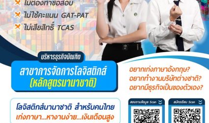 Blogนักเรียน Dek67 มีที่เรียนก่อนใคร “โลจิสติกส์ สวนสุนันทา” เปิดรับนักศึกษาใหม่ หลักสูตรเข้ม เรียนจบไม่ตกงาน tui sakrapee August 7, 2023 วิทยาลัยโลจิสติกส์และซัพพลายเชน มหาวิทยาลัยราชภัฏสวนสุนันทา เปิดรับสมัครนักศึกษาใหม่ ในหลักสูตรที่ตอบโจทย์โลกยุคปัจจุบันและสนองตอบต่อทักษะอาชีพในโลกอนาคต เริ่มรับสมัครตั้งแต่บัดนี้เป็นต้นไป DEK67 รับตรง สาขาการจัดการโลจิสติกส์หลักสูตรนานาชาติ โอกาสสำหรับผู้ที่สนใจทำงานด้านธุรกิจระหว่างประเทศ ขนส่ง นำเข้าสินค้าระหว่างประเทศ จัดซื้อต่างประเทศ ตำแหน่งงานที่มีรายได้สูงจากบริษัทชั้นนำ สนใจ Scan Qr…