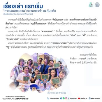 การมอบกระดาน : ความทรงจำอันงดงามของชาวศึกษาศาสตร์ ศิลปากร tui sakrapee July 24, 2024 ย้อนความทรงจำ จากจุดเริ่มต้นแผ่นป้ายไม้เล็ก ๆ ที่เขียนชื่อ รหัส สาขาวิชาของแต่ละคนเอาไว้ ในชื่อกล่าวขานว่า “ป้ายกระดาน” ของชาวศึกษาศาสตร์ ศิลปากร ซึ่งเริ่มต้นมาตั้งแต่ปี 2548 โดยการมอบกระดาน ผู้มอบให้คือ “ครู” ส่วนผู้รังสรรค์ป้ายคือ “รุ่นพี่” ที่เอาใจใส่ดูแลน้องที่ก้าวเข้ามาสู่ครอบครัวศึกษาศาสตร์ เรื่องราวเล่าขาน และมีการปฏิบัติสืบทอดมาจวบจนทุกวันนี้จนกลายเป็นตำนานอันอบอุ่น มีที่มาและจะเป็นไปอย่างไร มาติดตามกัน… Continue Reading
