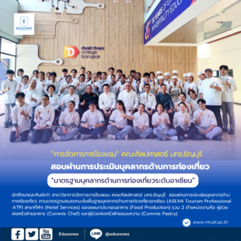 “การจัดการการโรงแรม” มทร.ธัญบุรี สอบผ่าน “มาตรฐานบุคลากรด้านการท่องเที่ยวระดับอาเซียน” tui sakrapee July 24, 2024 นักศึกษาและศิษย์เก่า สาขาวิชาการจัดการการโรงแรม คณะศิลปศาสตร์ มหาวิทยาลัยเทคโนโลยีราชมงคลธัญบุรี (มทร.ธัญบุรี) สอบผ่านการประเมินบุคลากรด้านการท่องเที่ยว ตามมาตรฐานสมรรถนะขั้นพื้นฐานบุคลากรด้านการท่องเที่ยวอาเซียน (ASEAN Tourism Professional :ATP) สาขาที่พัก (Hotel Services) ของแผนกประกอบอาหาร (Food Production) รวม 2 ตำแหน่งงานคือ ผู้ช่วยพ่อครัวฝ่ายอาหาร (Commis Chef) และผู้ช่วยพ่อครัวฝ่ายขนมหวาน (Commis Pastry) ผู้ช่วยศาสตราจารย์ ดร.นิศากร สิงหเสนี คณบดีคณะศิลปศาสตร์ มทร.ธัญบุรี เปิดเผยว่า คุณวุฒิ ประสบการณ์และการรับรองที่เป็นมาตรฐานมีความสำคัญกับต่อผู้เรียนและผู้ที่กำลังจะสำเร็จการศึกษา โดยคุณวุฒิ เป็นหลักฐานยืนยันถึงความรู้และทักษะที่ได้รับการฝึกฝนในสาขาวิชาต่าง ๆ ทำให้นายจ้างเห็นถึงศักยภาพและความพร้อมในการทำงานของนักศึกษา ส่วนประสบการณ์ที่ได้จากการฝึกงานหรือโครงการต่าง ๆ ช่วยให้สามารถปรับตัวและทำงานได้อย่างมีประสิทธิภาพ ทั้งยังเป็นข้อได้เปรียบเมื่อเทียบกับผู้สมัครงานที่ไม่มีประสบการณ์ใดเลย… Continue Reading