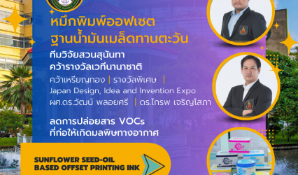 ครู-อาจารย์ “หมึกพิมพ์ออฟเซตฐานน้ำมันเมล็ดทานตะวัน” ทีมวิจัยสวนสุนันทาคว้ารางวัลเวทีนานาชาติ tui sakrapee July 25, 2023 นักวิจัยมหาวิทยาลัยราชภัฏสวนสุนันทา โดย ผู้ช่วยศาสตราจารย์ ดร.วัฒน์ พลอยศรี และอาจารย์ ดร.ไกรพ เจริญโสภา คณะเทคโนโลยีอุตสาหกรรม นำผลงานวิจัย “หมึกพิมพ์ออฟเซตฐานน้ำมันเมล็ดทานตะวัน” ซึ่งได้รับการคัดเลือกจากสำนักงานการวิจัยแห่งชาติ (วช.) เข้าร่วมประกวดและจัดแสดงผลงาน เมื่อวันที่ 8…