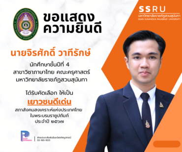 สภาสังคมสงเคราะห์ฯ ยกย่องนักศึกษาครุศาสตร์ สวนสุนันทา เป็นเยาวชนดีเด่น ประจำปี 2567 tui sakrapee July 16, 2024 คณะครุศาสตร์ มหาวิทยาลัยราชภัฏสวนสุนันทา ขอแสดงความยินดี กับ “นายจิรศักดิ์ วาทีรักษ์” นักศึกษาชั้นปีที่ 4 สาขาวิชาภาษาไทย คณะครุศาสตร์ มหาวิทยาลัยราชภัฏสวนสุนันทา ที่ได้รับคัดเลือกให้เป็น #เยาวชนดีเด่น ประจำปี 2567 จากสภาสังคมสงเคราะห์แห่งประเทศไทยในพระบรมราชูปถัมภ์ Continue Reading