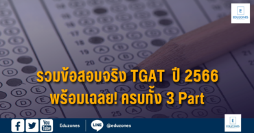 EZ Webmaster July 10, 2024 รวมข้อสอบจริง TGAT ปี 2566 พร้อมเฉลย! ครบทั้ง 3 Part EZ Webmaster July 10, 2024 TGAT (Thai General Aptitude Test) คือ การสอบวัดความรู้ความถนัดทั่วไปในรูปแบบใหม่ที่ใช้แทนการสอบ GAT แบบเดิม เริ่มใช้ครั้งแรกในระบบ TCAS66 โดยการสอบ TGAT แบ่งออกเป็น 3 Part ซึ่งผู้สมัครจะต้องสอบครบทั้ง 3 Part รวม 300 คะแนน (Part ละ 100 คะแนน) TGAT1 91 การสื่อสารภาษาอังกฤษ (English Communication) ทักษะการพูด… Continue Reading