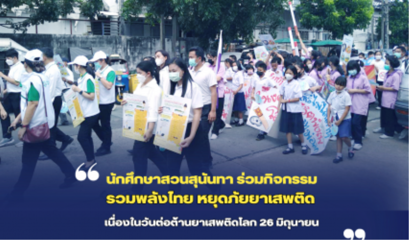 Blogนักศึกษา นักศึกษาสวนสุนันทา รวมพลังไทย หยุดภัยยาเสพติด เนื่องในวันต่อต้านยาเสพติดโลก 26 มิถุนายน tui sakrapee June 27, 2023 นักศึกษามหาวิทยาลัยราชภัฏสวนสุนันทา ร่วมเดินรณรงค์ต่อต้านยาเสพติด ในวันต่อต้านยาเสพติดโลก (26 มิถุนายน) ร่วมกับอาสาสมัครกรุงเทพมหานครด้านการป้องกันและแก้ไขปัญหายาและสารเสพติด และภาคีเครือข่ายในพื้นที่เขตดุสิต โดยเริ่มเดินตั้งแต่บริเวณถนนสุคันธารามจนถึงสำนักงานเขตดุสิต โดยมี นายสรรเสริญ เรืองฤทธิ์ ผู้ช่วยผู้อำนวยการเขตดุสิต เป็นประธานในกิจกรรมดังกล่าว . ******************* ฝ่ายประชาสัมพันธ์และโสตทัศนูปกรณ์…