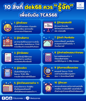 10 สิ่งที่ dek68 ควร “รู้จัก” เพื่อรับมือ TCAS68 EZ Webmaster June 19, 2024 . 1.รู้จักตัวเอง การรู้จักตัวเองในที่นี้ไม่ใช่หมายถึงการ รู้ว่าตัวเองบ้านอยู่ไหน พ่อแม่เป็นใครนะครับ ฮ่าๆ แต่หมายถึงการรู้ในสิ่งที่ตัวเองชอบตัวเองรักอยากจะเรียน อยากจะเป็นและอยากจะทำในอนาคต ซึ่งใครที่รู้จักตัวเองได้เร็ว พี่แฮนด์บอกเลยว่า ได้เปรียบชาวบ้านแน่นอน เพราะคนที่รู้จักตัวเองตั้งแต่เนิ่นๆ จะสามารถเตรียมตัวเตรียมการได้ก่อนใคร เพราะฉะนั้นแล้วน้องๆคนไหนที่ยังเอ๋อๆอยู่ หาตัวเองไม่เจอ รีบซะนะครับ โดยเฉพาะก่อนการที่จะขึ้นชั้น ม.6 การค้นหาตัวเองน้องๆอาจมองว่าเป็นเรื่องยาก พี่แฮนด์ขอแนะนำให้น้องที่ยังไม่รู้ว่าตัวเองชอบอะไร ลองหาข้อมูลคณะต่างที่เปิดสอนอยู่ว่าเรียนเกี่ยวกับอะไร หรือดูอาชีพที่ตัวเองมองว่าทำแล้วจะมีความสุข ซึ่งข้อมูลพวกนี้สามารถหาได้ตามอินเทอร์เน็ตหรือไปค่าย หรืองาน OPEN HOUSE เปิดบ้านของมหาวิทยาลัยต่างๆ เพราะการไปร่วมกิจกรรมเหล่านี้น้องๆจะได้พูดคุยกับรุ่นพี่โดยตรง ซักถาม พูดคุยกันได้แบบจุใจได้เลย โดยตอนนี้ถึงแท้กิจกรรมเหล่านี้จะยังจัดแบบ onsite ไม่ได้แต่น้องๆก็ยังเข้าร่วมแบบ online ได้ไม่มีปัญหานะครับ ถ้าน้องๆยังไม่มีเวลาจะลองทำแบบทดสอบค้นหาตัวเองของ eduzones เพื่อเป็นการสำรวจตัวเองเบื้องต้น เป็นไกด์ให้ตัวเองก่อนได้ที่ >> http://ez.eduzones.com/test/ .… Continue Reading