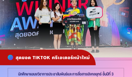 Blogนักศึกษา เด็กนิเทศ สวนสุนันทา ชนะเลิศ Digilife Tik Tok idal Challenge 2023 สุดยอด TikTok ครีเอเตอร์หน้าใหม่ tui sakrapee June 15, 2023 นักศึกษาประชาสัมพันธ์ วิทยาลัยนิเทศศาสตร์ มหาวิทยาลัยราชภัฏสวนสุนันทา รับรางวัลชนะเลิศโครงการ Digilife Tik Tok idal Challenge 2023 รับทุนการศึกษา 10,000 บาทพร้อมเกียรติบัตร นักศึกษาแขนงวิชาการประชาสัมพันธ์และการสื่อสารเชิงกลยุทธ์ ชั้นปีที่ 3…