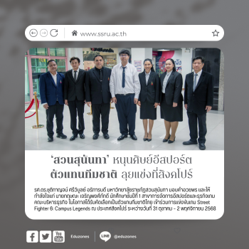 tui sakrapee October 27, 2025 สวนสุนันทาหนุนศิษย์อีสปอร์ตตัวแทนทีมชาติ ลุยแข่ง Street Fighter 6 ที่สิงคโปร์ tui sakrapee October 27, 2025 รศ.ดร.ชุติกาญจน์ ศรีวิบูลย์ อธิการบดี มหาวิทยาลัยราชภัฏสวนสุนันทา มอบคำอวยพรและให้กำลังใจแก่ นายกฤษณะ เจริญพงศ์ภักดี นักศึกษาชั้นปีที่ 1 สาขาการจัดการอีสปอร์ตและธุรกิจเกม คณะบริหารธุรกิจ ในโอกาสได้รับคัดเลือกเป็นตัวแทนทีมชาติไทย เข้าร่วมการแข่งขันเกม Street Fighter 6: Campus Legends ณ ประเทศสิงคโปร์ ระหว่างวันที่ 31 ตุลาคม – 2 พฤศจิกายน 2568 อธิการบดีได้กล่าวชื่นชมในความมุ่งมั่นและความสามารถของนักศึกษา พร้อมทั้งให้โอวาทในการเป็นตัวแทนเยาวชนไทยสร้างชื่อเสียงให้กับประเทศและมหาวิทยาลัยในระดับนานาชาติ ทั้งนี้รายการ Campus… Continue Reading