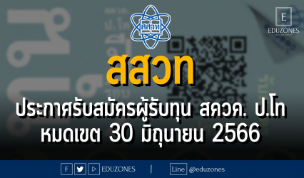 ครู-อาจารย์นักศึกษานักเรียน สถาบันส่งเสริมการสอนวิทยาศาสตร์และเทคโนโลยี (สสวท.)ประกาศรับสมัครผู้รับทุน สควค. ป.โท : หมดเขต 30 มิถุนายน 2566 EZ Webmaster June 9, 2023 . สถาบันส่งเสริมการสอนวิทยาศาสตร์และเทคโนโลยี (สสวท.) ประกาศรับสมัครคัดเลือกผู้รับทุนโครงการ สควค. ระยะที่ 4 ประเภท 2 ระดับปริญญาโท ประจำปีการศึกษา 2566 รอบที่ 2 ด้วยกรอบจำนวนทุน 25…