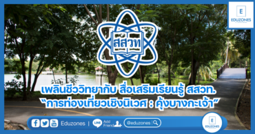 เพลินชีววิทยากับ สื่อเสริมเรียนรู้ สสวท. “การท่องเที่ยวเชิงนิเวศ : คุ้งบางกะเจ้า” EZ Webmaster June 6, 2024 สถาบันส่งเสริมการสอนวิทยาศาสตร์และเทคโนโลยี (สสวท.) พาเพลิดเพลินแหล่งเรียนรู้วิทยาศาสตร์กับวีดิทัศน์ “การท่องเที่ยวเชิงนิเวศ : คุ้งบางกะเจ้า” สื่อการสอนชีววิทยา ระดับมัธยมศึกษาปีที่ 6 ของ สสวท. เสริมความรู้และประสบการณ์กับแหล่งท่องเที่ยวใกล้ ๆ กรุงเทพฯ แถมยังเป็นแหล่งท่องเที่ยวเชิงนิเวศที่มีคุณค่าสมเป็นแหล่งเรียนรู้วิทยาศาสตร์ที่เหมาะกับทุกวัย ใช้เป็นสื่อในชั้นเรียน หรือ เติมเต็มประสบการณ์ได้ตามความสนใจของผู้เรียน คลิก ที่คลังสื่อการสอน สสวท. https://myipst.ipst.ac.th/medias/search?keyword=เชิงนิเวศ Continue Reading