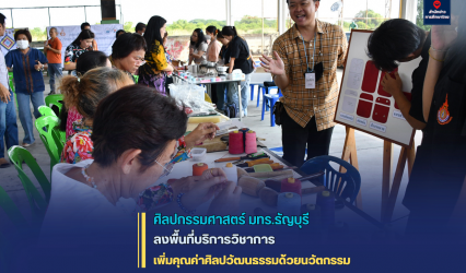Blogกิจกรรม ศิลปกรรมศาสตร์ มทร.ธัญบุรี ลงพื้นที่บริการวิชาการ เพิ่มคุณค่าศิลปวัฒนธรรมด้วยนวัตกรรม tui sakrapee June 2, 2023 อาคารอเนกประสงค์ หมู่บ้านคันทรีปาร์ค 15 ตำบลบางเตย อำเภอสามโคก จังหวัดปทุมธานี คณะศิลปกรรมศาสตร์ มหาวิทยาลัยเทคโนโลยีราชมงคลธัญบุรี (มทร.ธัญบุรี) นำทีมโดยอาจารย์ณัฐพล ซอฐานานุศักดิ์ ภาควิชาศิลปะการออกแบบและเทคโนโลยี นักวิจัย อาจารย์ และนักศึกษา ลงพื้นที่บริการวิชาการ เพื่อเพิ่มคุณค่าด้านศิลปวัฒนธรรมด้วยนวัตกรรม ประจำปีงบประมาณ พ.ศ. 2566 โดยผู้ช่วยศาสตราจารย์…