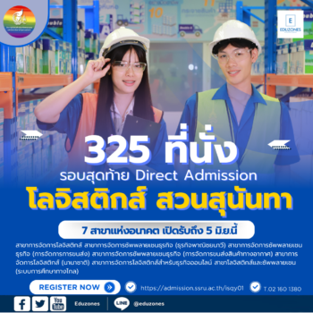 325 ที่นั่ง รอบสุดท้าย Direct Admission “โลจิสติกส์ สวนสุนันทา” 7 สาขาแห่งอนาคต รับถึง 5 มิ.ย.นี้ tui sakrapee May 28, 2024 วิทยาลัยโลจิสติกส์และซัพพลายเชน (วิทยาเขตนครปฐม) เปิดรับน้องใหม่รอบสุดท้าย ใน 7 สาขาแห่งอนาคตยอดฮิต จบแล้วไม่ตกงาน พร้อมมีทุนการศึกษามอบให้อีกหลายประเภท รวมรับรอบส่งท้าย 325 ที่นั่ง เท่านั้น #รอบสุดท้าย #มหาวิทยาลัยราชภัฏสวนสุนันทา รอบรับตรงอิสระ Direct Admission เปิดรับสมัครนักศึกษา ระดับปริญญาตรี (ภาคปกติ) ตั้งแต่วันที่ 27 พ.ค. – 5 มิ.ย. 2567 ที่ https://admission.ssru.ac.th/isqy01 สาขาวิชาที่เปิดรับ วิทยาลัยโลจิสติกส์และซัพพลายเชน (วิทยาเขตนครปฐม) สาขาวิชาการจัดการโลจิสติกส์ 110 ที่นั่ง สาขาวิชาการจัดการซัพพลายเชนธุรกิจ (ธุรกิจพาณิชยนาวี) 20 ที่นั่ง สาขาวิชาการจัดการซัพพลายเชนธุรกิจ (การจัดการการขนส่ง) 50 ที่นั่ง สาขาวิชาการจัดการซัพพลายเชนธุรกิจ (การจัดการขนส่งสินค้าทางอากาศ)… Continue Reading