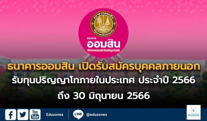 ทุนดีดี ธนาคารออมสิน เปิดรับสมัครบุคคลภายนอก รับทุนปริญญาโทภายในประเทศ ประจำปี 2566 EZ Webmaster May 30, 2023 ธนาคารออมสิน รับสมัครคัดเลือกบุคคลภายนอก เพื่อรับทุนการศึกษาระดับปริญญาโทภายในประเทศ ประจำปี 2566 เปิดรับสมัครถึง 30 มิ.ย. 66 ประกาศรายชื่อฯ ภายใน 31 ส.ค. 66 เปิดตั้งแต่บัดนี้เป็นต้นไป จนถึงวันที่…