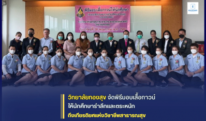 Blogนักศึกษา วิทยาลัยทองสุข จัดพิธีมอบเสื้อกาวน์ให้นักศึกษารำลึกและตระหนักถึงเกียรติยศแห่งวิชาชีพสาธารณสุข tui sakrapee May 29, 2023 วันที่ 28 พฤษภาคม 2566 ดร.พรจิต อรัณยกานนท์ อธิการบดี วิทยาลัยทองสุข มอบหมาย ดร.วิชาญ เหรียญวิไลรัตน์ รองอธิการบดี เป็นประธานในพิธี พร้อมคณะผู้บริหาร คณบดี ผู้อำนวยการ…