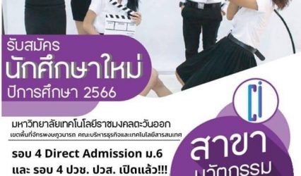 นักเรียน มทร.ตะวันออก เปิดรับสมัครนักศึกษา TCAS66 รอบ 4 EZ Webmaster May 26, 2023 มหาวิทยาลัยเทคโนโลยีราชมงคลตะวันออก เขตพื้นที่จักรพงษภูวนารถ คณะบริหารธุรกิจและเทคโนโลยีสารสนเทศ สาขาวิชานวัตกรรมการสื่อสาร เปิดรับสมัครนักศึกษา วุฒิ ม.6 และ ปวช. ปวส. เข้าศึกษาระดับปริญญาตรี รอบ 4 Direct Admission ม.6…