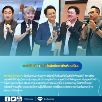 เรียนฟรี! คณะแพทยศาสตร์ มช. เปิดคอร์ส “กายวิภาคศาสตร์มนุษย์พื้นฐาน” เรียนออนไลน์ได้ถึง 31 ก.ค. 2569 EZ WebmasterApril 22, 2026 🧠✨ เรียนฟรี! คณะแพทยศาสตร์ มช. เปิดคอร์ส “กายวิภาคศาสตร์มนุษย์พื้นฐาน” เรียนออนไลน์ได้ถึง 31 ก.ค. 2569 โอกาสดีสำหรับน้อง ๆ นักเรียน นักศึกษา และผู้ที่สนใจสายสุขภาพ ล่าสุด คณะแพทยศาสตร์ มหาวิทยาลัยเชียงใหม่… เปิดจักรวาล “สายพยาบาล” ✨ ชวนน้อง ม.ปลาย ร่วมงานใหญ่แห่งปี จากสถาบันการพยาบาลศรีสวรินทิรา EZ WebmasterApril 19, 2026 🏥 เปิดจักรวาล “สายพยาบาล” ✨ ชวนน้อง ม.ปลาย ร่วมงานใหญ่แห่งปี จากสถาบันการพยาบาลศรีสวรินทิรา ใครสนใจสายสุขภาพ ห้ามพลาด! ✨สถาบันการพยาบาลศรีสวรินทิรา สภากาชาดไทย ขอเชิญชวนน้อง ๆ ระดับมัธยมปลาย และประชาชนทั่วไป เข้าร่วมกิจกรรมเปิดบ้านสุดยิ่งใหญ่ ภายใต้ธีม… ม.เกริก ผนึกกำลัง 14 สถาบันอุดมศึกษาชั้นนำ ร่วมลงนาม MOU ยกระดับการพัฒนาสังคมและงานวิจัยระดับชาติ tui sakrapeeApril 15, 2026 มหาวิทยาลัยเกริก ผนึกกำลัง 14 สถาบันอุดมศึกษาชั้นนำ ร่วมลงนาม MOU ยกระดับการพัฒนาสังคมและงานวิจัยระดับชาติ ณ สถาบันบัณฑิตพัฒนบริหารศาสตร์ (NIDA) วันที่ 9 เมษายน 2569 ณ สถาบันบัณฑิตพัฒนบริหารศาสตร์ (NIDA) มหาวิทยาลัยเกริก… ราชมงคลพระนคร ร่วมสนับสนุนกิจกรรมในงานกระตุ้นเศรษฐกิจรัชดา-ประชาชื่น สำนักงานเขตบางซื่อ tui sakrapeeApril 9, 2026 ดร.ณัฐวรพล รัชสิริวัชรบุล อธิการบดีมหาวิทยาลัยเทคโนโลยีราชมงคลพระนคร มอบหมายให้ ผศ.ศรัทธา แข่งเพ็ญแข ผู้ช่วยอธิการบดี เข้าร่วมประชุมและประสานงาน โดยมีผศ.ดร.ยุทธภูมิ สุวรรณเวช รองอธิการบดี เป็นผู้กำกับดูแลในการสนับสนุน จัดกิจกรรมในงานกระตุ้นเศรษฐกิจรัชดา-ประชาชื่น โดยสำนักงานเขตบางซื่อ ซึ่งจัดในพื้นที่บริเวณสวนสุขภาพแยกประชานุกูล ระหว่างวันที่ 19-27 มี.ค.2569… Search for: Search Classic Blog “สพฐ.” จับมือ “มูลนิธิยุวพัฒน์” ขยายผลกลไก“ร้อยพลังการศึกษา” ลดเหลื่อมล้ำช่วยเด็กไทยรอบด้าน EZ Webmaster May 21, 2024 ปรากฏการณ์ใหม่วงการศึกษาไทย ! เมื่อกลไกภาครัฐโดยสำนักงานคณะกรรมการการศึกษาขั้นพื้นฐาน (สพฐ.) กระทรวงศึกษาธิการ ร่วมลงนามบันทึกความเข้าใจความร่วมมือ (MOU) กับกลไกภาคประชาชนโดยมูลนิธิยุวพัฒน์เพื่อขยายผล 9 เครื่องมือภายใต้ “โครงการร้อยพลังการศึกษา” นำร่องปีแรกกับกว่า 500 โรงเรียน และจะขยายผลต่อเนื่องต่อไป เพื่อลดปัญหาความเหลื่อมล้ำด้านการศึกษาที่ทุกคนสามารถมีส่วนร่วมได้ พิธีลงนามบันทึกความเข้าใจความร่วมมือ (MOU) โครงการร้อยพลังการศึกษา เพื่อร่วมมือกันส่งเสริมให้เด็กและเยาวชนในประเทศไทยได้รับการสนับสนุนรอบด้าน ระหว่างสำนักงานคณะกรรมการการศึกษาขั้นพื้นฐาน (สพฐ.) ลงนามโดยนา