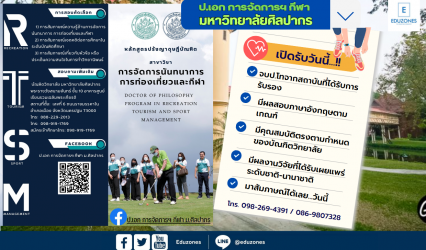 Blogนักศึกษา ป.เอก การจัดการนันทนาการ การท่องเที่ยวและกีฬา ม.ศิลปากร เปิดรับสมัครนักศึกษารุ่นใหม่ วันนี้! tui sakrapee May 24, 2023 หลักสูตรปรัชญาดุษฎีบัณฑิต สาขาวิชาการจัดการนันทนาการ การท่องเที่ยวและกีฬา มหาวิทยาลัยศิลปากร – ปร.ด. (การจัดการนันทนาการ การท่องเที่ยวและกีฬา) Ph.D.(Recreation Tourism and Sport Management) เปิดรับสมัครผู้ที่จบทุกสาขาวิชา สนใจดูรายละเอียดหลักสูตรได้ที่นี่ https://drive.google.com/file/d/14HHB8YGVbyWZkWY-3TA5UdUaEY5384dO/view…
