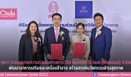Blogกิจกรรม จุฬาฯ ร่วมลงนามความร่วมมือทางการวิจัยกับบริษัทรีโว่เมด(ไทยแลนด์)จำกัด พัฒนาอาหารเสริมและเครื่องสำอาง สร้างสรรค์นวัตกรรมด้านสุขภาพ tui sakrapee May 23, 2023 จุฬาลงกรณ์มหาวิทยาลัยผนึกความร่วมมือด้านการวิจัยกับบริษัท รีโว่เมด (ไทยแลนด์) จำกัด พัฒนาอาหารเสริมและเครื่องสำอาง จากองค์ความรู้และนวัตกรรมจากคณะเภสัชศาสตร์ จุฬาฯ นำไปใช้ประโยชน์เพื่อสังคม ลดการนำเข้า เพิ่มการส่งออกผลิตภัณฑ์จากนวัตกรรมจุฬาฯ พิธีลงนามบันทึกข้อตกลงความร่วมมือทางการวิจัยระหว่างจุฬาลงกรณ์มหาวิทยาลัยกับบริษัท รีโว่เมด (ไทยแลนด์)…