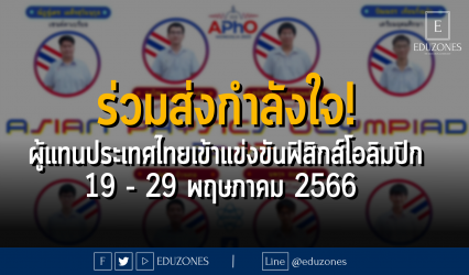 ครู-อาจารย์นักศึกษานักเรียน ร่วมส่งกำลังใจ! ผู้แทนประเทศไทยเข้าแข่งขันฟิสิกส์โอลิมปิกระดับทวีปเอเชีย 2566 : 19 – 29 พฤษภาคม 2566 ณ กรุงอูลานบาตาร์ ประเทศมองโกเลีย EZ Webmaster May 19, 2023 ร่วมส่งกำลังใจ! ให้ผู้แทนประเทศไทยเข้าแข่งขันฟิสิกส์โอลิมปิกระดับทวีปเอเชีย 2566 : 19 – 29 พฤษภาคม 2566 ณ กรุงอูลานบาตาร์ ประเทศมองโกเลียย . รายชื่อผู้แทนประเทศไทย นายณัฏฐ์เดช เผด็จสุวันนุกูล…