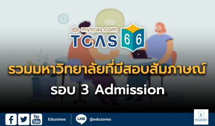 นักเรียนBlogข่าวเด่นข่าวเด่น!ครู-อาจารย์นักศึกษา รวมมหาวิทยาลัยที่มีสอบสัมภาษณ์ TCAS66 รอบ 3 Admission EZ Webmaster May 18, 2023 TCAS66 รอบ 3 Admission ที่เปิดรับสมัครในระบบ mytcas.com 7-13 พฤษภาคม 2566 มหาวิทยาลัยไหนมีการสอบสัมภาษณ์บ้าง Eduzones ได้รวบรวมมาให้แล้ว ไปดูกันเลย กลุ่มสถาบันแพทยศาสตร์แห่งประเทศไทย (กสพท.)…