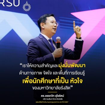 40 ปี ม.รังสิต ดร.อรรถวิท อุไรรัตน์ ชูหัวใจ คือ นักศึกษา เน้นคุณภาพ ไม่เน้นปริมาณ tui sakrapee May 11, 2024 ดร.อรรถวิท อุไรรัตน์ อธิการบดีมหาวิทยาลัยรังสิต ให้เกียรติเป็นประธานงาน 40 ปี ม.รังสิต และในฐานะวันคล้ายวันเกิดท่าน ดร.อาทิตย์ อุไรรัตน์ ผู้ก่อตั้งมหาวิทยาลัยรังสิต เมื่อวันที่ 9 พ.ค.2567 ณ ตึก 14 อาคารนันทนาการ ท่ามกลางคณะผู้บริหาร คณาจารย์ และเจ้าหน้าที่ ม.รังสิต ร่วม 3,000 คน โดยภายในงานท่านอธิการบดี ได้เผยถึงความสำเร็จตลอด 2 ปี ของการเข้ามารับตำแหน่งอธิการบดี ว่า ด้านกายภาพ การบริการและความรู้สึกปลอดภัย จะเป็นสิ่งที่มหาวิทยาลัยรังสิต ให้ความสำคัญ โดยจะทำเป็นพื้นที่ปลอดภัยทุกตารางนิ้ว พร้อมกับจะดูแลให้เปนพื้นที่ปลอดภัยในใจนักศึกษา โดยมุ่งเน้นที่นักศึกษา ต้องได้รับการดูแลดุจลูก-หลาน มีเครื่องอำนวยความสะดวก ตลอดจนสิ่งที่สนับสนุนในการเรียน การสอน… Continue Reading