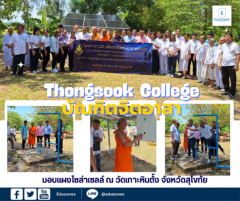 tui sakrapee May 13, 2024 คณาจารย์พร้อมนักศึกษาวิทยาลัยทองสุข บริจาคแผงโซล่าเซลล์ แก่วัดเกาะหินตั้ง จังหวัดสุโขทัย tui sakrapee May 13, 2024 ดร.พรจิต อรัณยกานนท์ อธิการบดีวิทยาลัยทองสุข มอบหมาย ผู้ช่วยศาสตราจารย์ ดร.คุณหญิงณฐนนท ทวีสิน รองอธิการบดีฝ่ายวิชาการและอาจารย์ ประจำหลักสูตร รัฐประศาสนศาสตรมหาบัณฑิต ทำกิจกรรม มอบแผงโซล่าเซลล์ ให้กับวัดเกาะหินตั้ง ตำบลเมืองบางขลัง อำเภอสวรรคโลก จังหวัดสุโขทัย โดย ผู้ช่วยศาสตราจารย์ธรรศพงศ์ วงษ์สวัสดิ์ ได้นำคณาจารย์ นักศึกษา ปริญญาโท หลักสูตรรัฐประศาสนศาสตรมหาบัณฑิต คณะสังคมศาสตร์และศึกษาศาสตร์ วิทยาลัยทองสุขได้ร่วมบริจาคแผงโซล่าเซลล์ เพื่อช่วยลดค่าใช้จ่ายด้านสาธารณูปโภคให้กับวัดและส่งเสริมการใช้ทรัพยากรอย่างยั่งยืน ปัจจุบันพลังงานสะอาด เช่น พลังงานแสงอาทิตย์ เป็นพลังงานทางเลือกที่หลายภาคส่วนให้ความสนใจต่อประสิทธิภาพในการผลิตไฟและเสถียรภาพของแผงโซล่า วิทยาลัยทองสุข ได้เล็งเห็นถึงความสำคัญของพลังงานสะอาดที่มีบทบาทต่อการศึกษาไทยจึงร่วมกับนักศึกษาปริญญาโท… Continue Reading