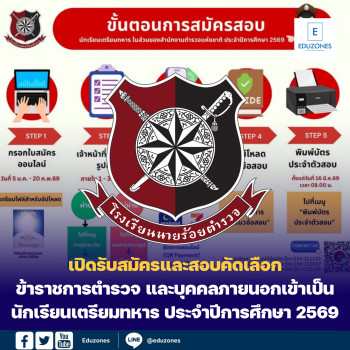 เปิดรับสมัครและสอบคัดเลือกข้าราชการตำรวจ และบุคคลภายนอกเข้าเป็นนักเรียนเตรียมทหาร ในส่วนของสำนักงานตำรวจแห่งชาติ ประจำปีการศึกษา 2569 EZ Webmaster January 5, 2026 เปิดรับสมัครและสอบคัดเลือกข้าราชการตำรวจ และบุคคลภายนอกเข้าเป็นนักเรียนเตรียมทหาร ในส่วนของสำนักงานตำรวจแห่งชาติ ประจำปีการศึกษา 2569 สำนักงานตำรวจแห่งชาติ ขอประชาสัมพันธ์การเปิดรับสมัครและสอบคัดเลือกข้าราชการตำรวจ และบุคคลภายนอกเพื่อเข้าศึกษาเป็นนักเรียนเตรียมทหาร ในส่วนของสำนักงานตำรวจแห่งชาติประจำปีการศึกษา 2569 โดยมีวัตถุประสงค์เพื่อคัดเลือกผู้ที่มีความรู้ ความสามารถ มีคุณธรรม จริยธรรม และมีความพร้อมทั้งด้านร่างกายและจิตใจ เข้ารับการฝึกศึกษาเพื่อเป็นกำลังสำคัญของประเทศในอนาคต สามารถสมัครได้ที่ : คลิ๊กที่นี่เพื่อสมัคร สอบถามการกรอกข้อมูล : โทร 034-312037 สอบถามคุณสมบัติผู้สมัคร : โทร 034-311103 Continue Reading