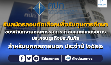 Blogครู-อาจารย์นักศึกษานักเรียน รับสมัครสอบคัดเลือกเพื่อรับทุนการศึกษา ของสำนักงานคณะกรรมการกำกับและส่งเสริมการประกอบธุรกิจประกันภัย สำหรับบุคคลภายนอก ประจำปี ๒๕๖๖ EZ Webmaster April 28, 2023 ทางสำนักงานคณะกรรมการกำกับและส่งเสริมการประกอบธุรกิจประกันภัย (สำนักงาน คปภ.) ได้มีความประสงค์จะให้ทุนการศึกษาสำหรับบุคคลภายนอกเพื่อศึกษาต่อในระดับปริญญาโทขึ้นไป จึงประกาศรับสมัครสอบคัดเลือกบุคคลเพื่อรับทุนการศึกษา ทุนในต่างประเทศ ระดับปริญญาโทขึ้นไป จำนวน 1 ทุน โดยมหาวิทยาลัยใน ๒๐ อันดับแรกในสาขาวิชานั้น ๆ ต่างประเทศจะต้อง ได้รับการจัดอันดับจากสถาบันจัดอันดับที่น่าเชื่อถือของต่างประเทศไม่เกินโดยสาขาวิชาของทุนที่รับสมัครสอบมีดังนี้…