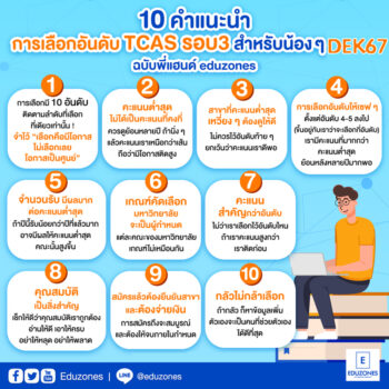 เรียนฟรี! คณะแพทยศาสตร์ มช. เปิดคอร์ส “กายวิภาคศาสตร์มนุษย์พื้นฐาน” เรียนออนไลน์ได้ถึง 31 ก.ค. 2569 EZ WebmasterApril 22, 2026 🧠✨ เรียนฟรี! คณะแพทยศาสตร์ มช. เปิดคอร์ส “กายวิภาคศาสตร์มนุษย์พื้นฐาน” เรียนออนไลน์ได้ถึง 31 ก.ค. 2569 โอกาสดีสำหรับน้อง ๆ นักเรียน นักศึกษา และผู้ที่สนใจสายสุขภาพ ล่าสุด คณะแพทยศาสตร์ มหาวิทยาลัยเชียงใหม่… เปิดจักรวาล “สายพยาบาล” ✨ ชวนน้อง ม.ปลาย ร่วมงานใหญ่แห่งปี จากสถาบันการพยาบาลศรีสวรินทิรา EZ WebmasterApril 19, 2026 🏥 เปิดจักรวาล “สายพยาบาล” ✨ ชวนน้อง ม.ปลาย ร่วมงานใหญ่แห่งปี จากสถาบันการพยาบาลศรีสวรินทิรา ใครสนใจสายสุขภาพ ห้ามพลาด! ✨สถาบันการพยาบาลศรีสวรินทิรา สภากาชาดไทย ขอเชิญชวนน้อง ๆ ระดับมัธยมปลาย และประชาชนทั่วไป เข้าร่วมกิจกรรมเปิดบ้านสุดยิ่งใหญ่ ภายใต้ธีม… ม.เกริก ผนึกกำลัง 14 สถาบันอุดมศึกษาชั้นนำ ร่วมลงนาม MOU ยกระดับการพัฒนาสังคมและงานวิจัยระดับชาติ tui sakrapeeApril 15, 2026 มหาวิทยาลัยเกริก ผนึกกำลัง 14 สถาบันอุดมศึกษาชั้นนำ ร่วมลงนาม MOU ยกระดับการพัฒนาสังคมและงานวิจัยระดับชาติ ณ สถาบันบัณฑิตพัฒนบริหารศาสตร์ (NIDA) วันที่ 9 เมษายน 2569 ณ สถาบันบัณฑิตพัฒนบริหารศาสตร์ (NIDA) มหาวิทยาลัยเกริก… ราชมงคลพระนคร ร่วมสนับสนุนกิจกรรมในงานกระตุ้นเศรษฐกิจรัชดา-ประชาชื่น สำนักงานเขตบางซื่อ tui sakrapeeApril 9, 2026 ดร.ณัฐวรพล รัชสิริวัชรบุล อธิการบดีมหาวิทยาลัยเทคโนโลยีราชมงคลพระนคร มอบหมายให้ ผศ.ศรัทธา แข่งเพ็ญแข ผู้ช่วยอธิการบดี เข้าร่วมประชุมและประสานงาน โดยมีผศ.ดร.ยุทธภูมิ สุวรรณเวช รองอธิการบดี เป็นผู้กำกับดูแลในการสนับสนุน จัดกิจกรรมในงานกระตุ้นเศรษฐกิจรัชดา-ประชาชื่น โดยสำนักงานเขตบางซื่อ ซึ่งจัดในพื้นที่บริเวณสวนสุขภาพแยกประชานุกูล ระหว่างวันที่ 19-27 มี.ค.2569… Search for: Search Classic Blog 10 คำแนะนำการเลือกอันดับ TCAS67 รอบ3 สำหรับน้องๆ dek67 EZ Webmaster April 22, 2024 10 คำแนะนำการเลือกอันดับ #TCAS67 รอบ3 สำหรับน้องๆ #dek67 #เด็กซิ่ว พี่แฮนด์จะมาแนะนำในภาพรวมนะครับ เพื่อให้น้องๆได้มีข้อมูล เผื่อไว้ได้อ่านเตรียมตัวกันก่อนที่จะเลือกอันดับ เลือกคณะกันในเดือนหน้านะครับ พีแฮนด์จะมาแนะนำในภาพรวมนะครับ เพื่อให้น้องๆได้มีข้อมูล เผื่อไว้ได้อ่านเตรียมตัวกันก่อนที่จะเลือกอันดับ เลือกคณะกันในเดือนหน้า ซึ่งน้องๆต้องไปศึกษารายละเอียด ข้อมูลเพิ่มเติม เพื่อโอกาสของน้องๆเองนะครับ.1. การเลือกมี 10 อันดับ #ติดตามลำดับที่เลือก ที่เดียวเท่านั้น! ติดอันดับ1 ที่เหลือตัดทิ้ง ไม่ติด1 ดูอันดับต่อไปเรื่อยๆ เพราะฉะนั้นถ้ารักจริง อันดับต้นๆ อย่ามองว่าเสี่ยง จำไว้ “เลือกคือมีโอกาส ไม่เลือกเลย โอกาสเป็นศูนย์เน้อ”.2. #การ