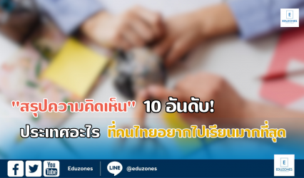Blogนักศึกษานักเรียน สรุปความคิดเห็น 10 อันดับ! ประเทศอะไร…ที่คนไทยอยากไปเรียนมากที่สุด EZ Webmaster April 24, 2023 จัดอันดับ! ความคิดเห็น ประเทศอะไร…ที่คนไทยอยากไปเรียนมากที่สุด จากชุมชนชาว Eduzones สวัสดีค่ะทุกคน วันนี้ชุมชน Eduzones ของเรา ได้รวบรวมผลสำรวจความคิดเห็นประเด็น ประเทศอะไร…ที่คนไทยอยากไปเรียนมากที่สุด? จาก โพล์ลการสำรวจความคิดเห็นด้านล่างนี้ https://www.facebook.com/interscholarship/posts/pfbid02on1d5jCx3N5E9uCkMLKMwWuDrHz1dZqdW2edy75RDnpRfiMDf3QTtX1sev5fdxSzl โดยเราได้รวบรวมผลจากการแสดงความคิดเห็นและได้จัดอันดับหมวดหมู่ออกเป็น…